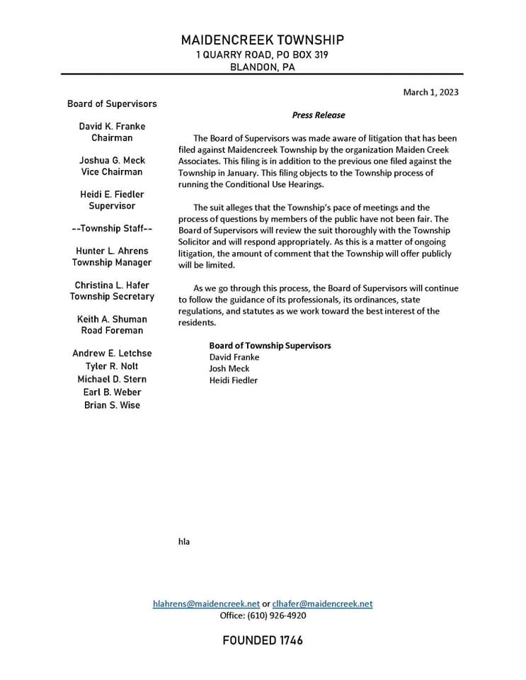 Our concerns about the impact on our community are “inappropriate” and “irrelevant?” This is what they think about Maidencreek. This is what they think about us.