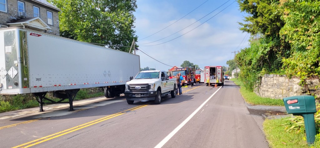 According to a 69 News freelancer at the scene, a Penn Manufacturing truck rear-ended another commercial vehicle, causing the latter’s load of batteries to shift and leak.